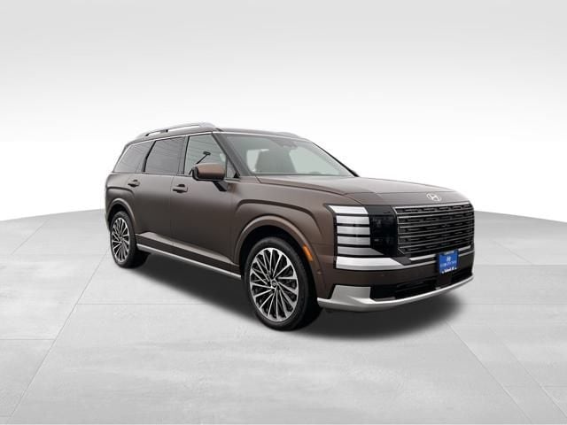 14 Speakers, 3rd row seats: split-bench, 4-Wheel Disc Brakes, ABS brakes, Air Conditioning, All-Season Fitted Liners, Alloy wheels, AM/FM radio: SiriusXM, Apple CarPlay & Android Auto, Audio memory, Auto High-beam Headlights, Auto-dimming door mirrors, Auto-dimming Rear-View mirror, Auto-leveling suspension, Automatic temperature control, Brake assist, Bumpers: body-color, Carpeted Floor Mats, Compass, Delay-off headlights, Driver door bin, Driver vanity mirror, Dual front impact airbags, Dual front side impact airbags, Electronic Stability Control, Emergency communication system: Bluelink+, Exterior Parking Camera Rear, Four wheel independent suspension, Front anti-roll bar, Front Bucket Seats, Front Center Armrest, Front dual zone A/C, Front reading lights, Fully automatic headlights, Garage door transmitter: HomeLink, Genuine wood console insert, Genuine wood dashboard insert, Heads-Up Display, Heated & Ventilated Front Bucket Seats, Heated door mirrors, Heated front seats, Heated rear seats, Heated steering wheel, HVAC memory, Illuminated entry, Knee airbag, Leather steering wheel, Low tire pressure warning, Memory seat, Navigation System, Occupant sensing airbag, Option Group 01, Outside temperature display, Overhead airbag, Overhead console, Panic alarm, Passenger door bin, Passenger vanity mirror, Power door mirrors, Power driver seat, Power Liftgate, Power moonroof, Power passenger seat, Power steering, Power windows, Premium Nappa Leather Seat Trim, Radio data system, Radio: Infotainment Navigation System, Rain sensing wipers, Rear air conditioning, Rear anti-roll bar, Rear audio controls, Rear reading lights, Rear side impact airbag, Rear window defroster, Rear window wiper, Reclining 3rd row seat, Remote keyless entry, Security system, Speed control, Split folding rear seat, Spoiler, Steering wheel mounted audio controls, Tachometer, Telescoping steering wheel, Tilt steering wheel, Traction control, Trip computer, Turn signal indicator mirrors, Variably intermittent wipers, Ventilated front seats, Ventilated rear seats, Wheels: 21" x 8.5J Alloy.